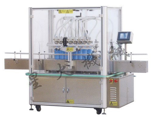 自动液体灌装机属于8头灌装机,根据客户需要还可增加灌装头数量。 同时适合不同规格、不同液体的灌装。 充填量一次调整完毕,每个容积缸可分别微量调节,灌装精度高且一致性好。
