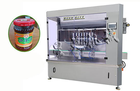 调味酱灌装机广泛适用于各种(含颗粒)酱料的灌装,如:香菇酱、辣椒酱、牛肉酱、番茄酱、沙拉酱、叉烧酱、夹馍酱、麻辣酱、卤肉酱、黑椒酱、豆豉酱、甜面酱、蒜蓉酱、拌饭酱、下饭酱、鱼滋酱、虾酱等产品。该款全自动调味酱灌装机比其之前适用范围更广泛,更专业化,而且省人工,提高了生产效率,能为企业带来更大的生产效益!