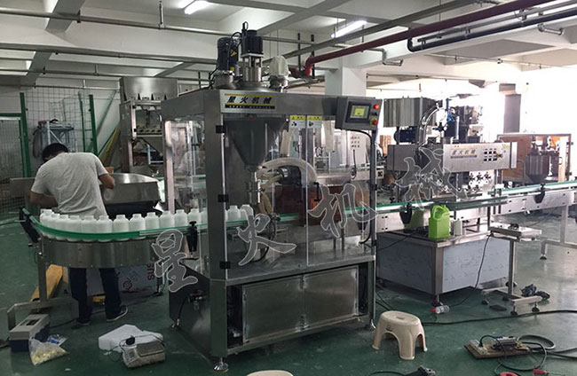 星火车间—全自动鸡精粉灌装生产线-调味粉灌装生产线—生产调试现场